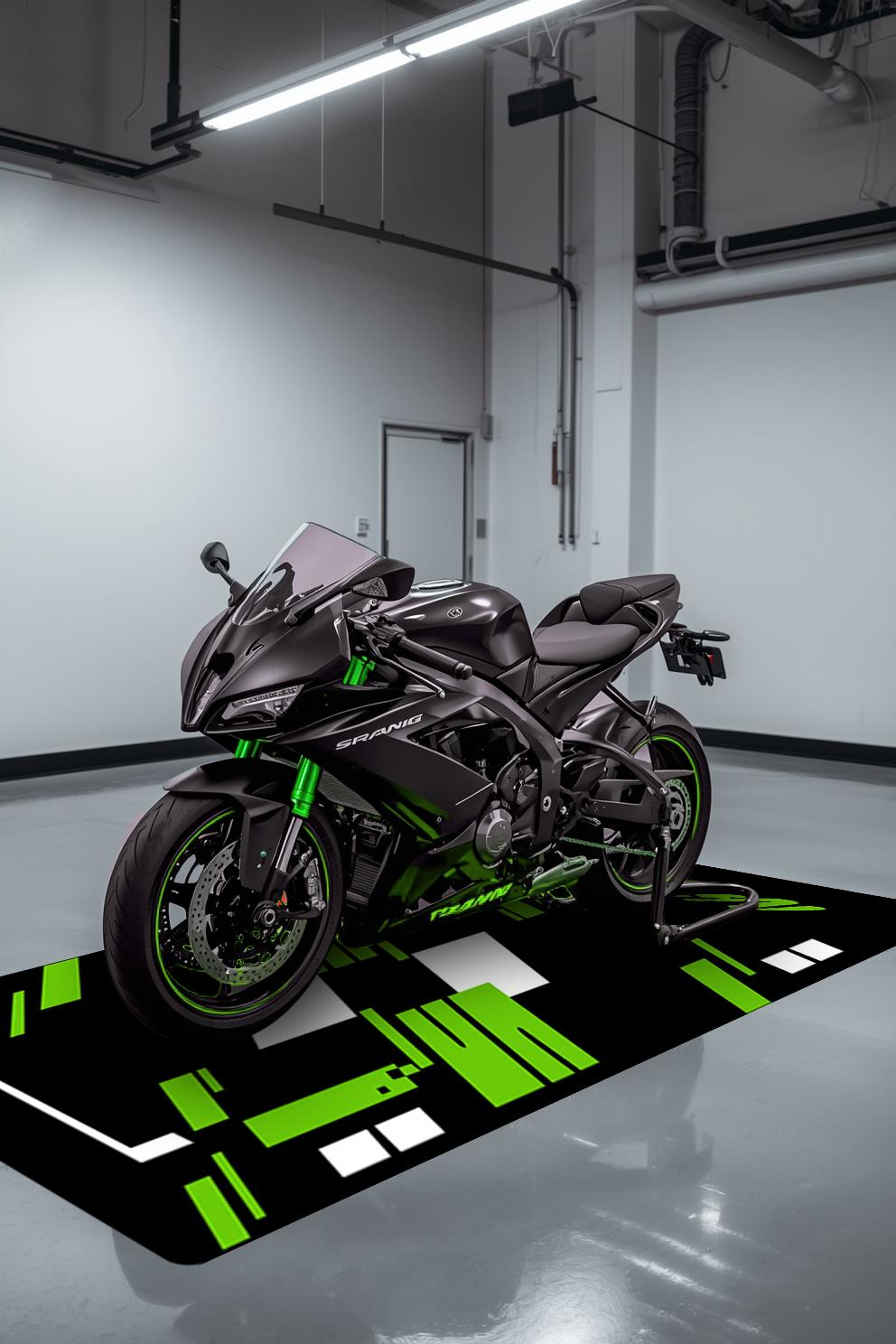 NİNJA Motor Matı Süngerli Kaymaz Dot Taban Dijital Baskı Motor Halısı MTR0003