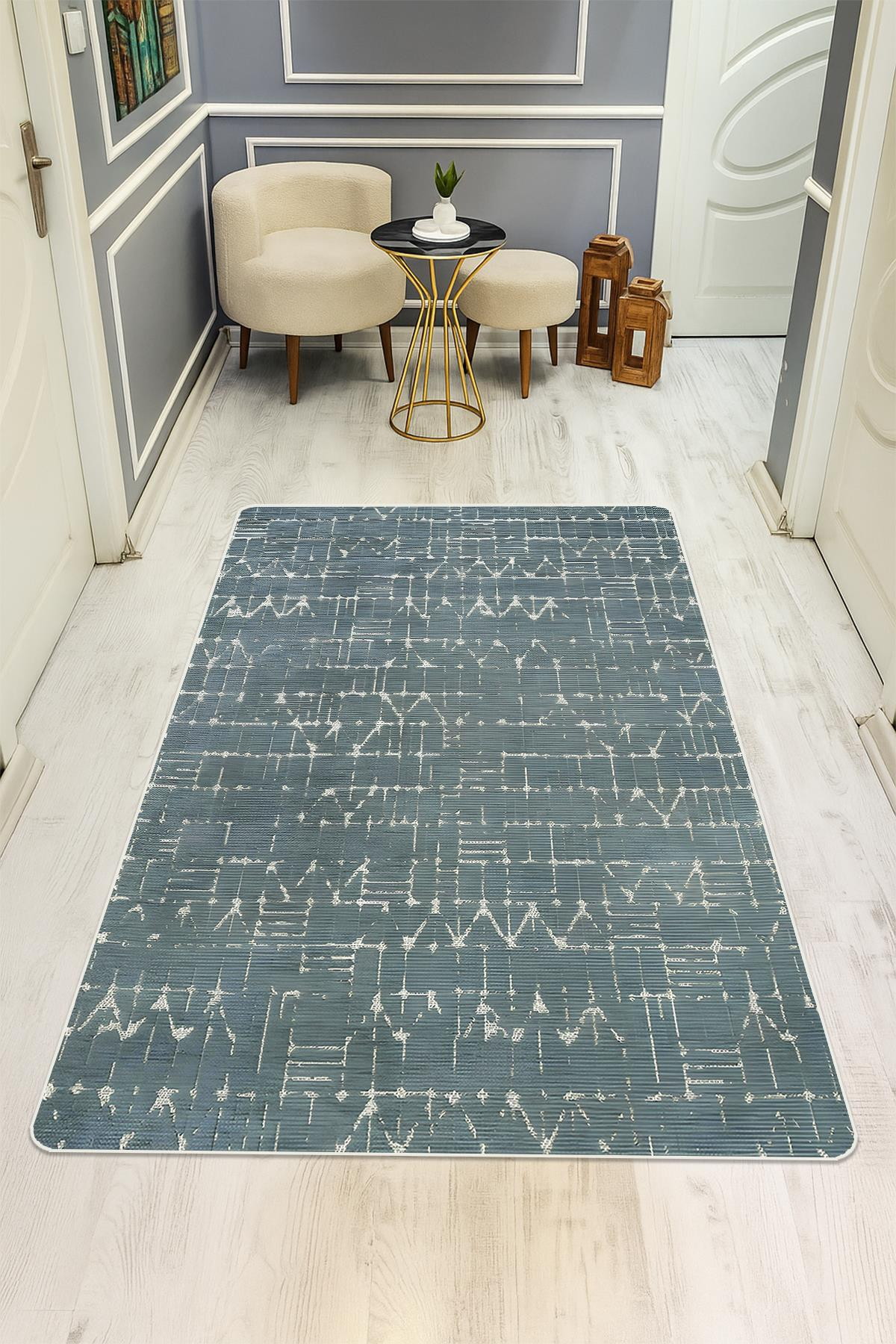 Etnik Desenli Su Yeşili Süngerli Kaymaz Dot Taban Dijital Baskı Halı H1070