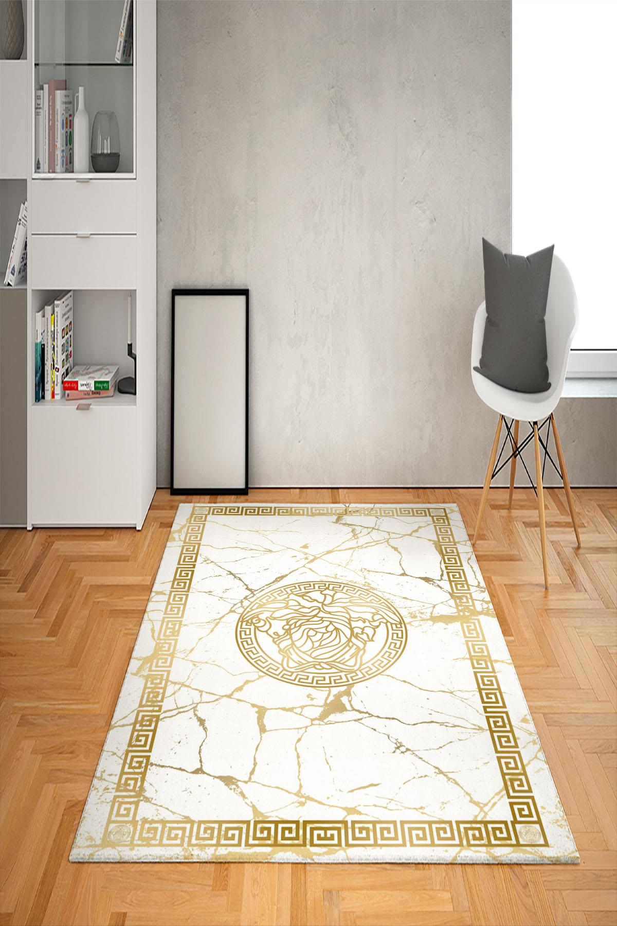 Kaymaz Taban Yıkanabilir Çerçeveli Granitli Medusa Desenli Dot Taban Halı