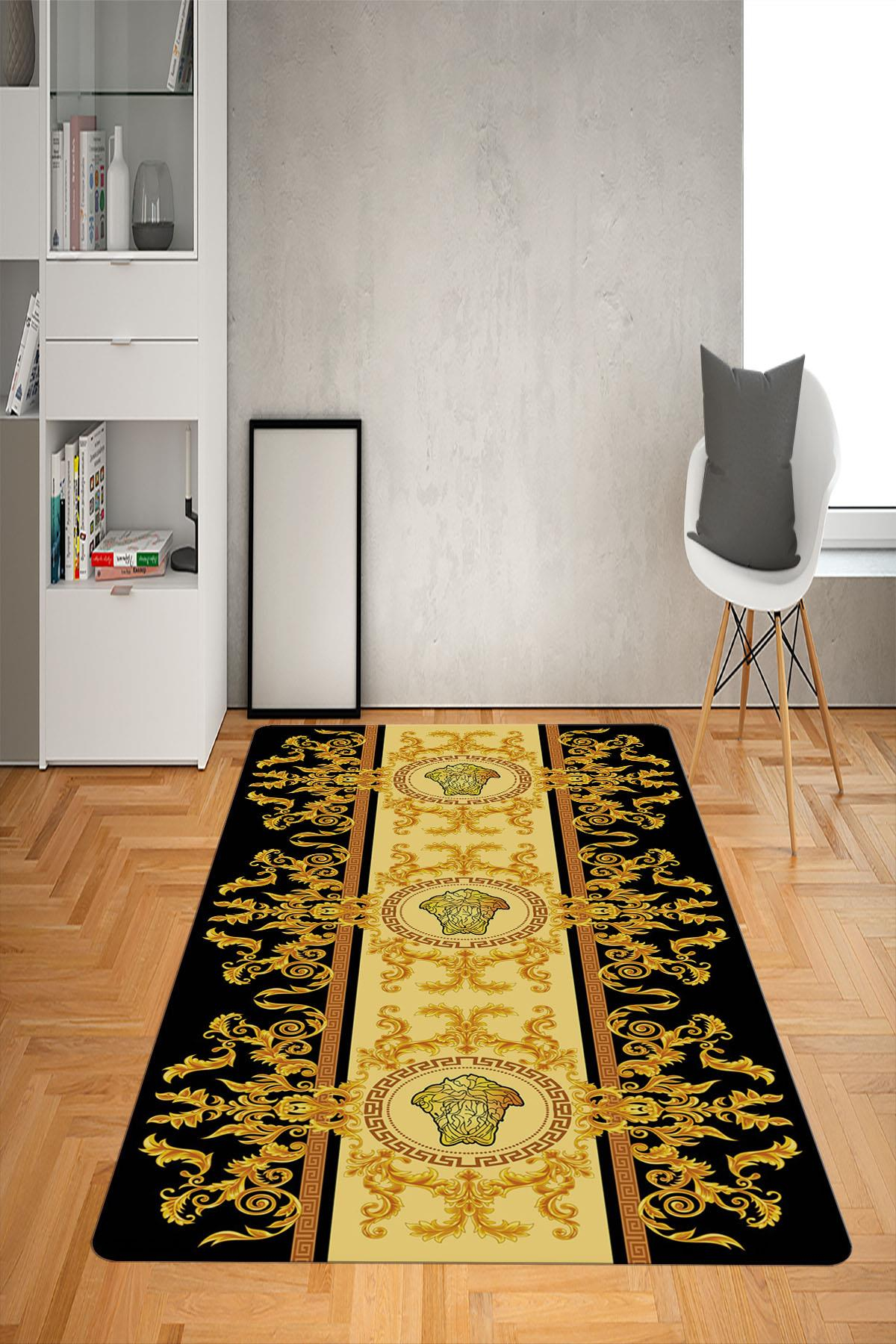 Kaymaz Taban Yıkanabilir Gold Baroque Medusa Desenli Dot Taban Halı