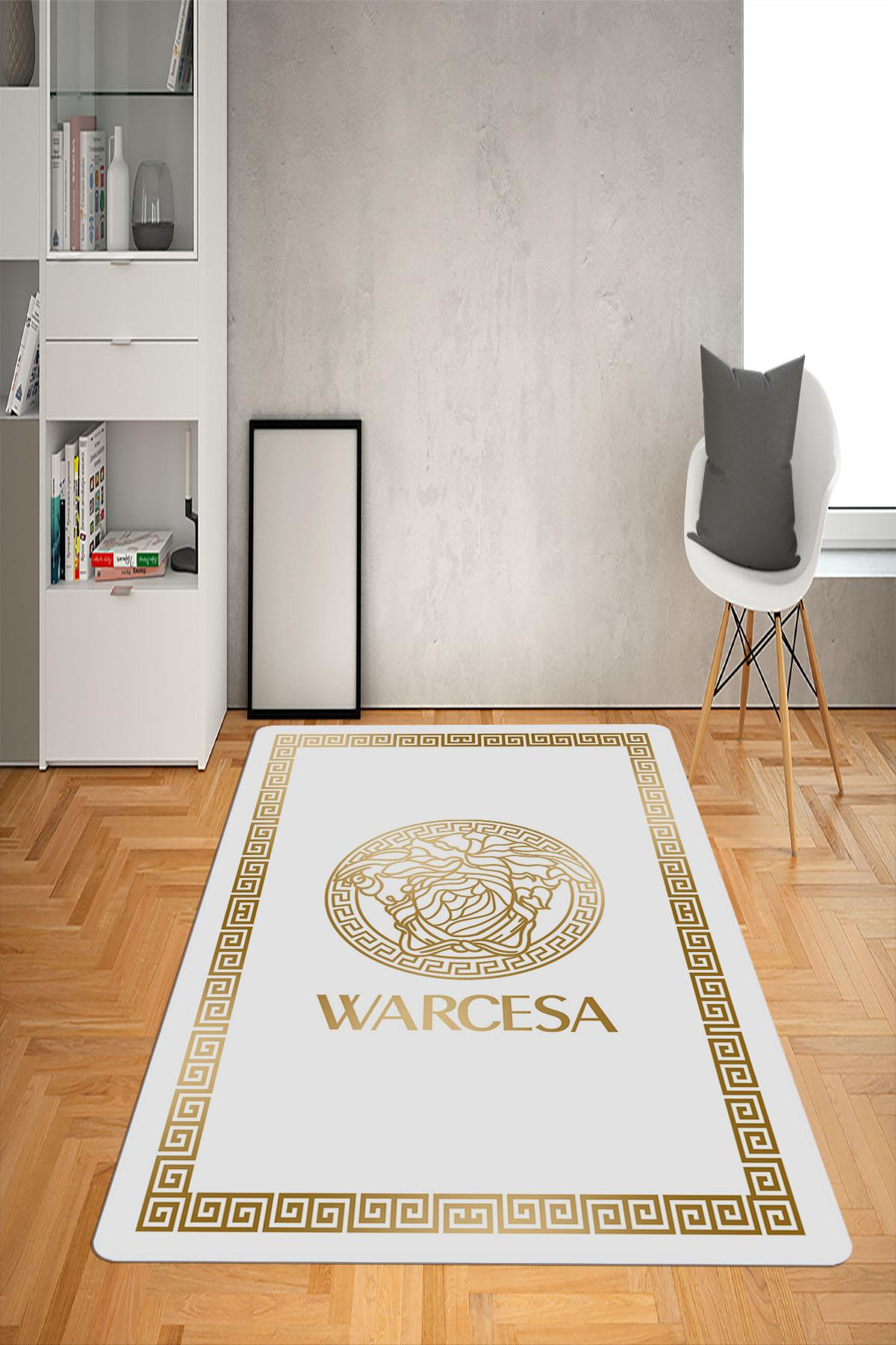 Kaymaz Taban Yıkanabilir Gold Geçişli Medusa Kafası Desenli Dot Taban Halı