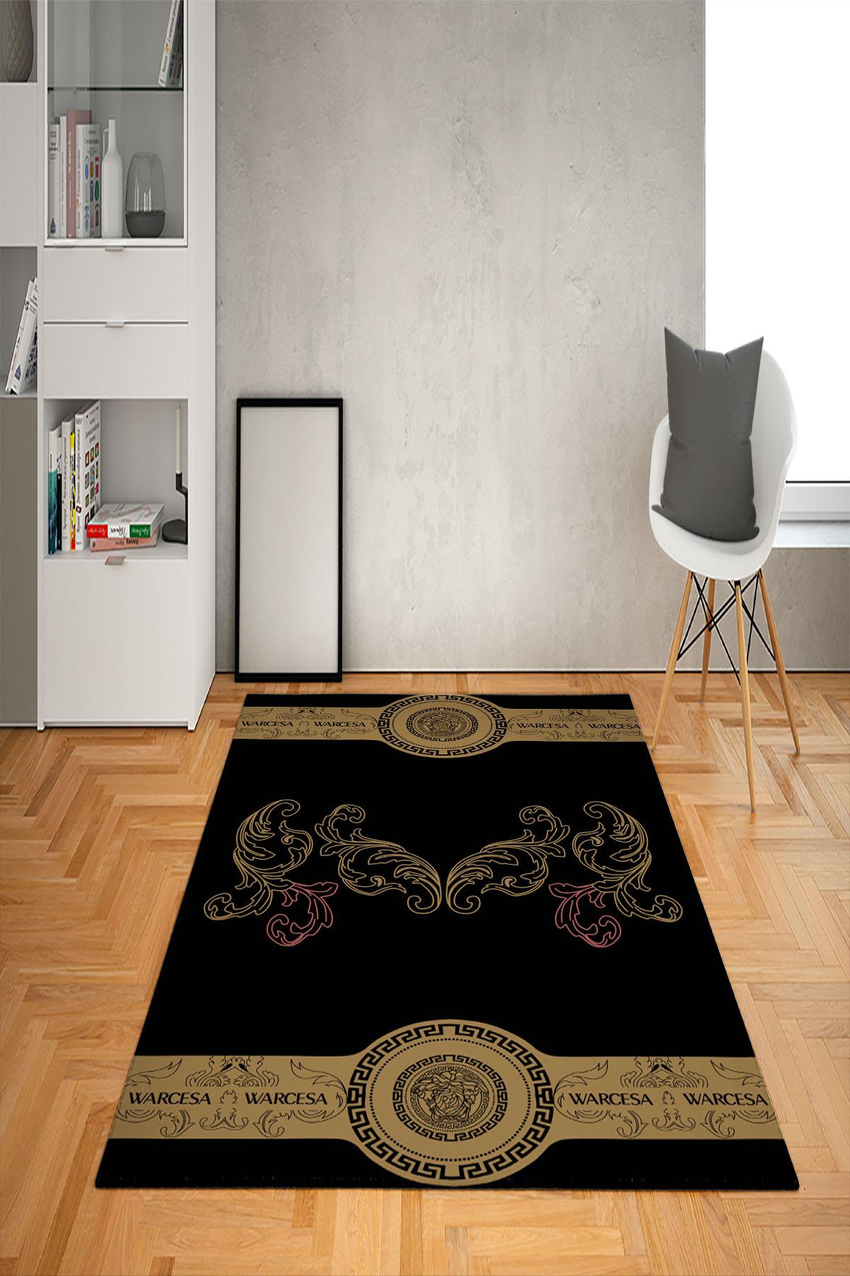 Kaymaz Taban Yıkanabilir Gold Medusa Desenli Dot Taban Halı
