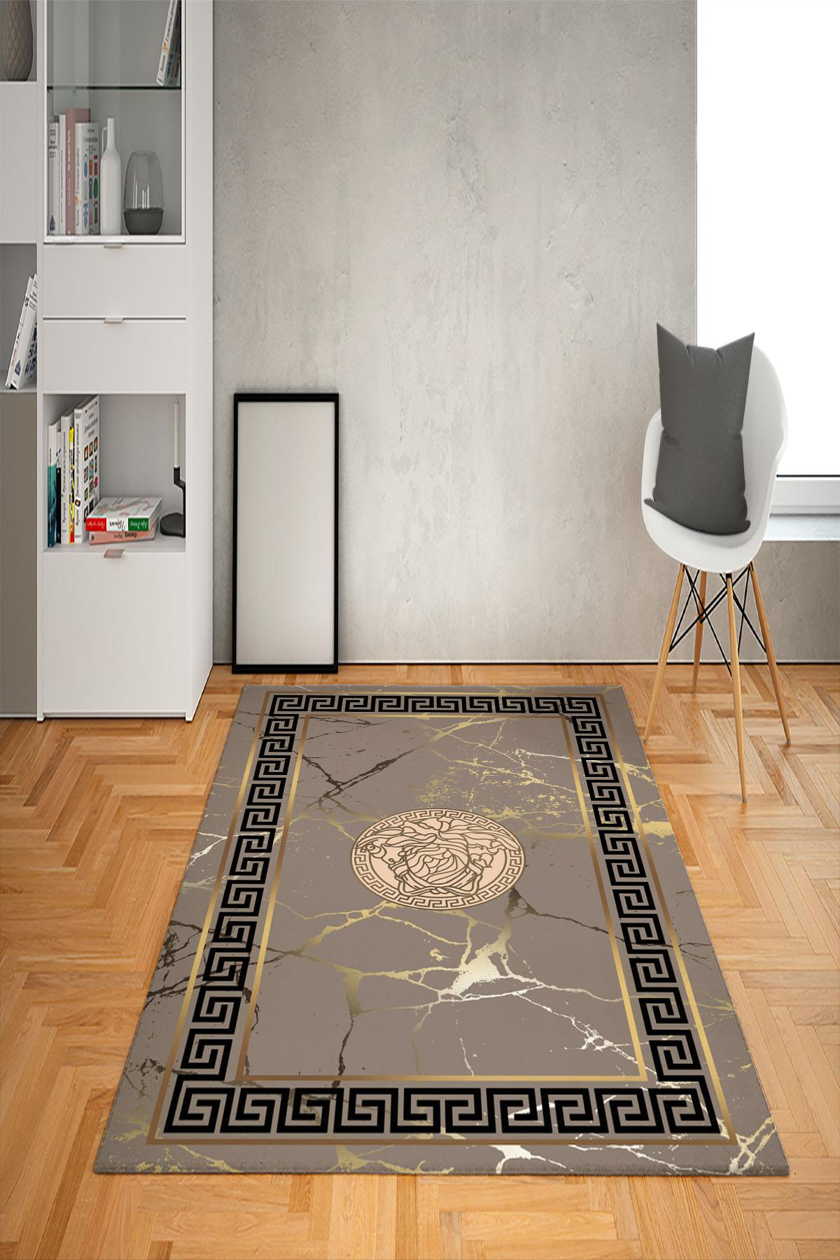 Kaymaz Taban Yıkanabilir Granitli Çerçeveli Medusa Desenli Dot Taban Halı