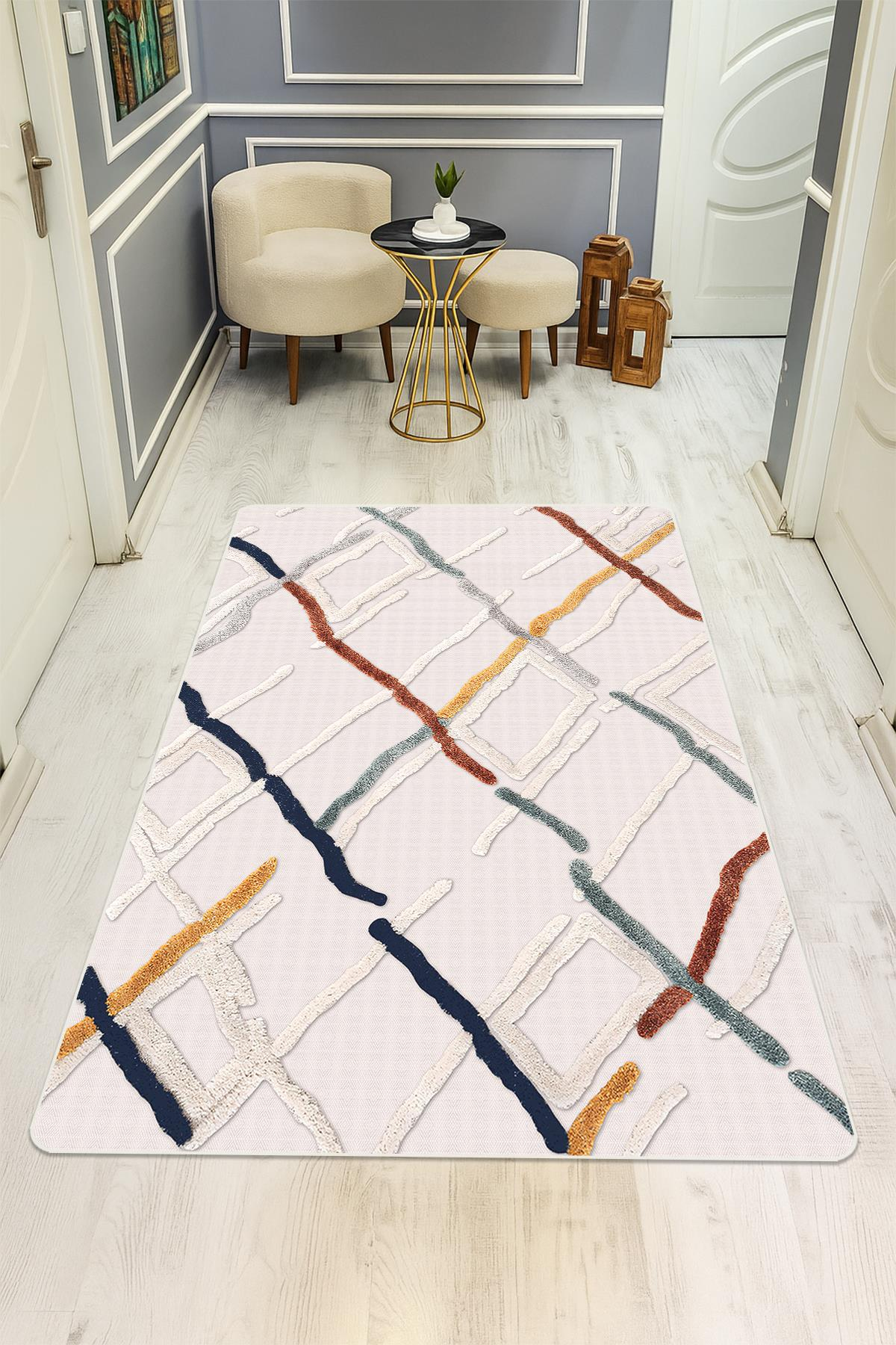 Modern Desenli Süngerli Kaymaz Dot Taban Dijital Baskı Halı H1074