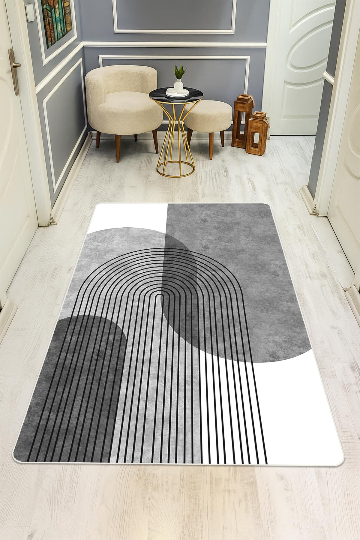 Modern Gri Desenli Süngerli Kaymaz Dot Taban Dijital Baskı Halı H0824