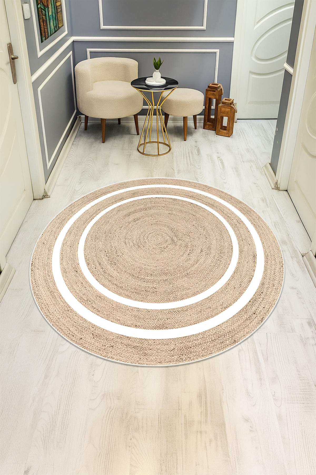 Yuvarlak Modern Desenli Süngerli Kaymaz Dot Taban Dijital Baskı Halı H0837